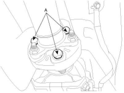 6. Install the crossmember (A) by installing the bolts(4ea) and put aside the supporting jack.