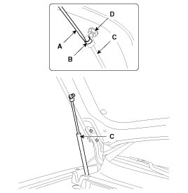 Using a screwdriver (A), lift the socket clips (B) up slightly on both ends of the lifter (C), and then remove the lifter from the bracket (D).