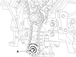 2. Install the oil pump sprocket and the oil pump chain on the oil pump, and tighten the sprocket bolt (A).