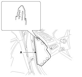 1. Using a screwdriver or remover, remove the crash pad side cover (A).