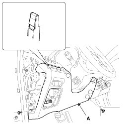 3. After loosening the mounting screws, then remove the crash pad lower panel (A).