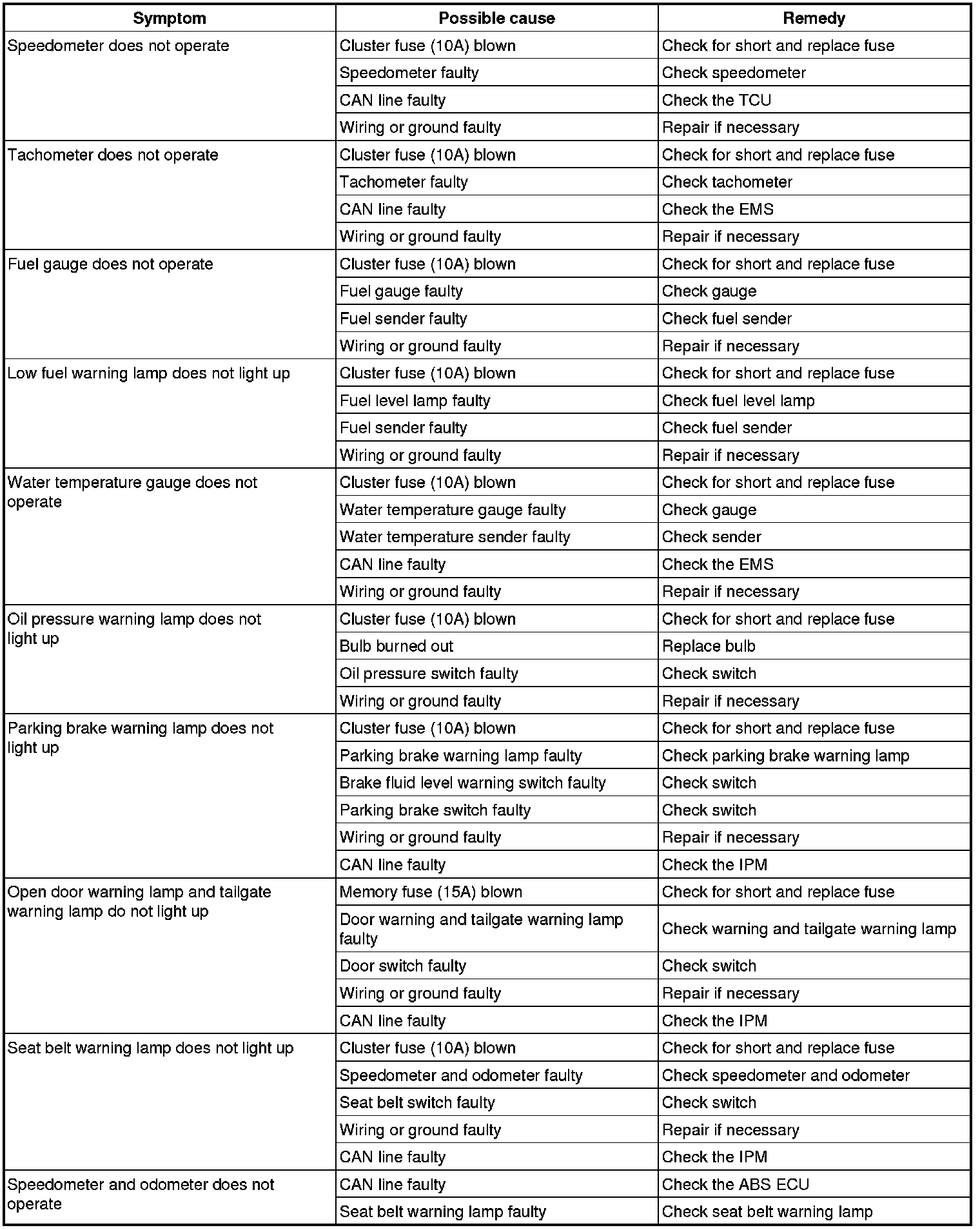 Instrument Panel, Gauges and Warning Indicators: Testing and Inspection