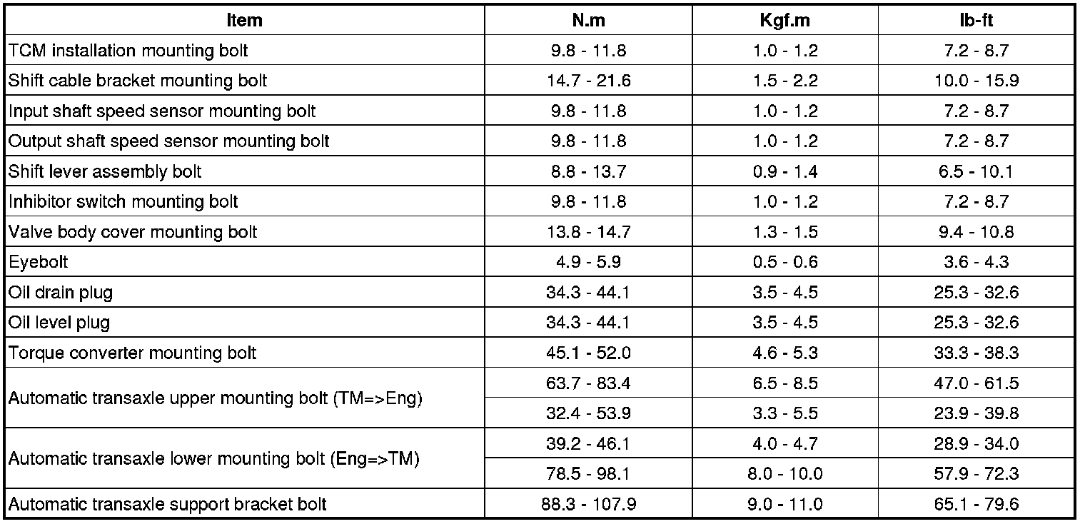 Tightening Torques