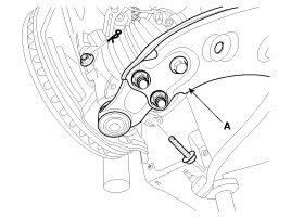 5. Remove the tie rod end ball joint(A) from the knuckle.