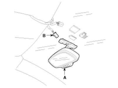 3. Push the inside rear view mirror base up to remove the inside rear view mirror assembly (A) after removing the screw.