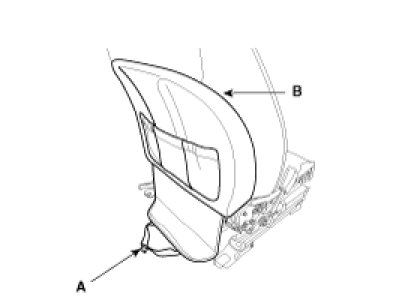 3. After disconnecting the scuff band (A), remove the seat back panel (B).