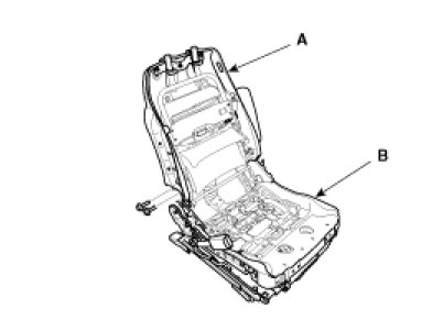 2. After loosening the mounting bolts, then disconnect the seat back frame (A) and seat cushion frame (B).