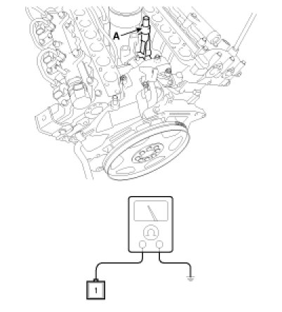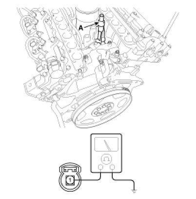 1. Check that there is continuity between the oil press switch terminal (A) and ground with the engine off.