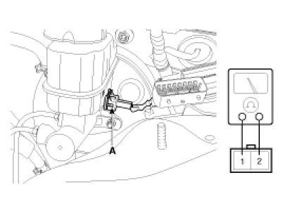 1. Remove the connector(A) from the switch located at the brake fluid reservoir.