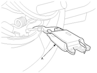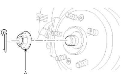 3. Remove the split pin(, then remove castle nut(A) and washer from the front hub under applying the break.