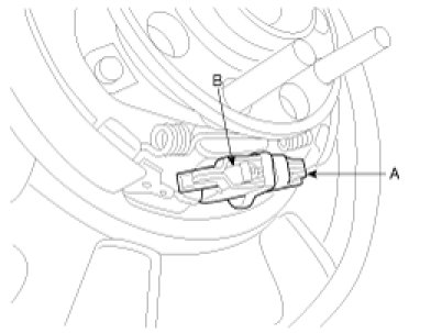 8. Remove the wheel speed sensor(A) and the parking brake cable(B) from the rear axle carrier.