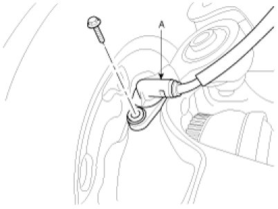 12. Loosen the strut mount bolt(A) and then remove the knuckle assembly.