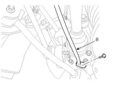 11. Loosen the upper arm link mount bolt and then remove the upper arm link(B).