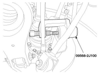 Remove the rear assist arm ball joint by using the special tool(09568-4A000).