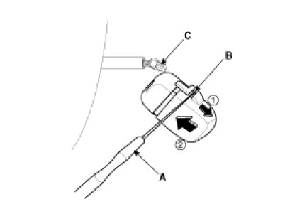 2. Be careful not to damage the cover latch by applying excessive force. To remove the latch, pull aside the latch using the cover hole (B) with a small flat - blade screwdriver (A).