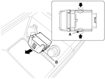 4. Remove the multimedia jack (B) from the console under cover after releasing the fixed hooks (A).
