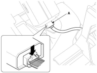 4. Remove the multimedia jack (B) from the console under cover after releasing the fixed hooks (A).