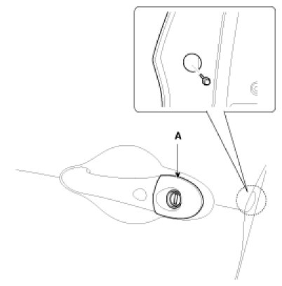 1. After loosening the mounting bolt, then remove the outside handle cover (A).