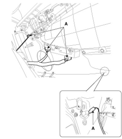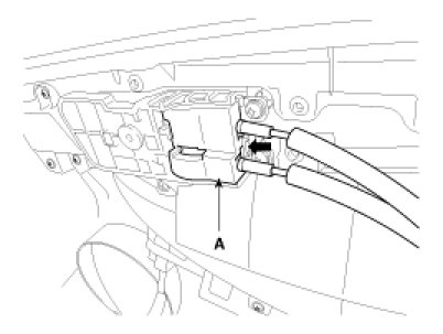 5. Disconnect the connectors (A), and then removing the front door trim.