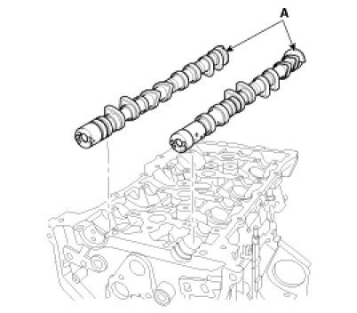 When removing the CVVT assembly bolt, prevent the camshaft from rotating by using a wrench at position A.