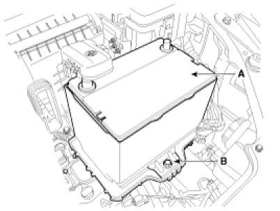 4. Remove the battery (A) after removing the mounting bracket (B).