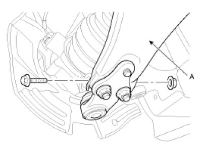 29. Support the sub frame (A) with a floor jack, and then remove the sub frame mounting bolts and nuts.