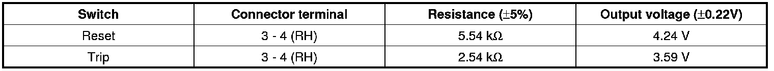 1. Check the audio remote control switch for resistance between No.3 and No.5 terminals in each switch position.