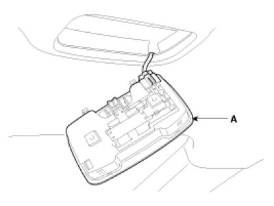 5. Remove the room lamp assembly (A) from the head lining after disconnecting the connector.