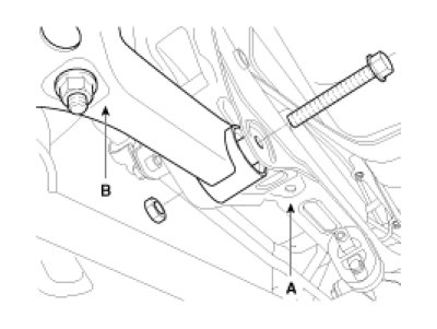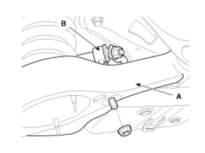 3. Loosen the nut and then remove the rear stabilizer link(B) with the rear lower arm(A).