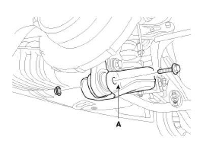 4. Loosen the bolt & nut and then remove the rear lower arm (A) with the rear axle.