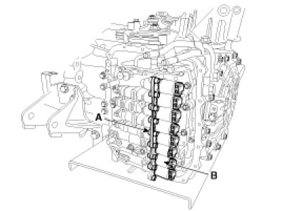 Replacing an on/off solenoid valve (SS-A, SS-B) does not require additional hydraulic pressure adjustment; however, the hydraulic pressure will need to be adjusted after replacing the VFS solenoid valve. If replacing the VFS solenoid valve; also replace the valve body assembly.