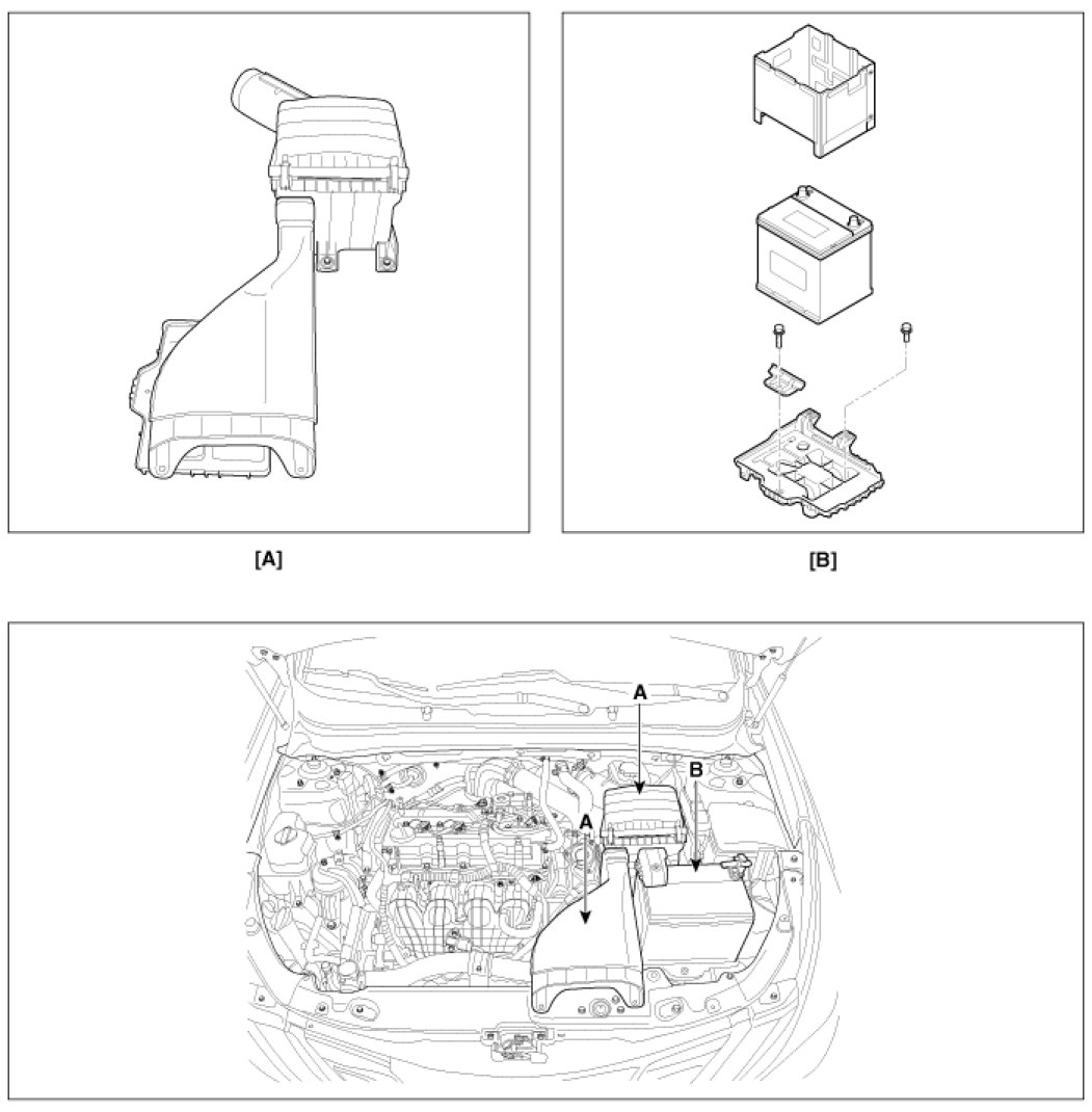 B. Battery and battery tray (B).