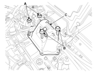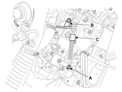 4. Remove the control cable (C) after removing the nut (A) and the bolt (B).