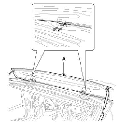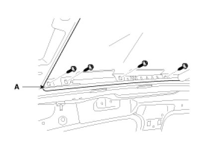 9. Using a screwdriver or remover, remove the roof molding (A).