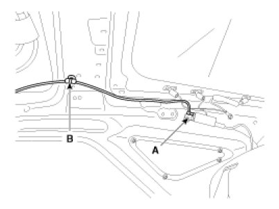 7. Disconnect the antenna connector (A) mounting clips (B).