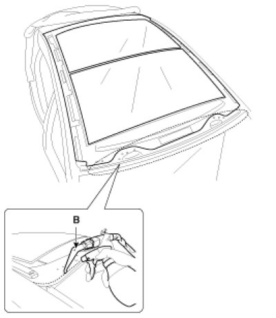 13. Open the space between chassis and sunroof using flathead screwdriver, and then cut the sealant of side using a tool (09816-2P121, 09816-2P122) (B).