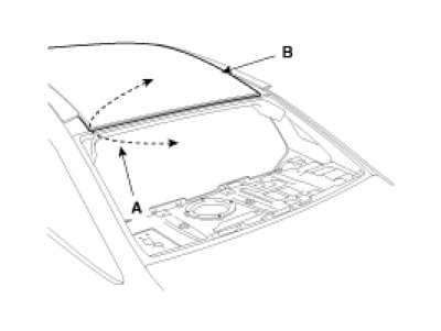 11. Open the space between chassis and sunroof using flathead screwdriver, and then cut the sealant of front using a tool (09816-2P121, 09816-2P122) (B).