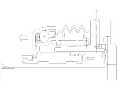 When the clutch pedal is pressed, oil pressure is transmitted along the arrow directions shown below and that moves the clutch slave cylinder and the diaphragm spring of the clutch cover.
