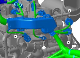 4. Disconnect the engine wiring connector and haness clamp and then remove the cylinder head protector and wiring from engine.