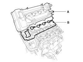 (3) Install the cylinder head cover (A) with a new gasket (B).