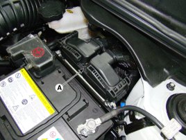 4. Remove the mounting bolts and nut, and then remove the ECM assembly (A).