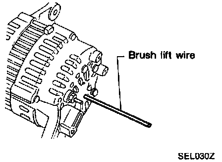 - Contact tip of wire with brush and attach wire to alternator body.
