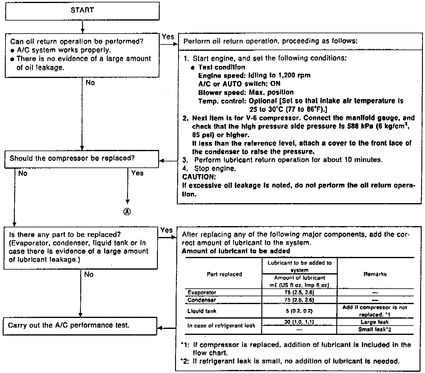 The lubricant used to lubricate the compressor circulates through the system with the refrigerant. Add lubricant to compressor when replacing any component or after repairing a large gas leak. It is important to maintain the specified amount. If lubricant quantity is not maintained properly, the following malfunctions may result: