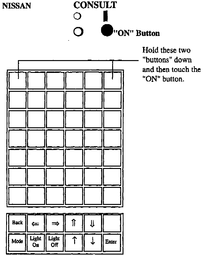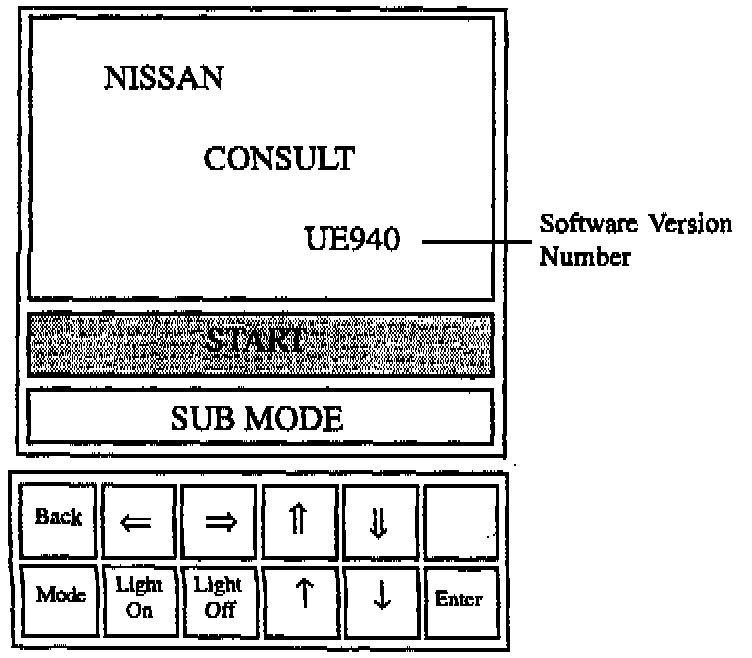 ^ The most recent software loaded into the CONSULT unit's Random Access Memory will be indicated by the numbers below the word CONSULT on the initial screen, as shown.