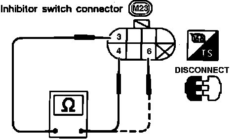 3. With shift lever in any position except ``P'' or ``N,'' no continuity should exist.