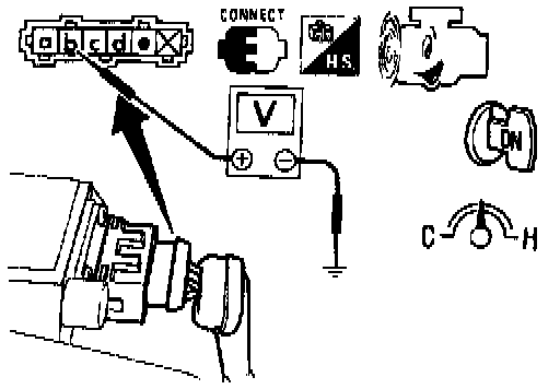 Ignition switch "ON" Engine Stopped. Approximately 0.8 Volts.