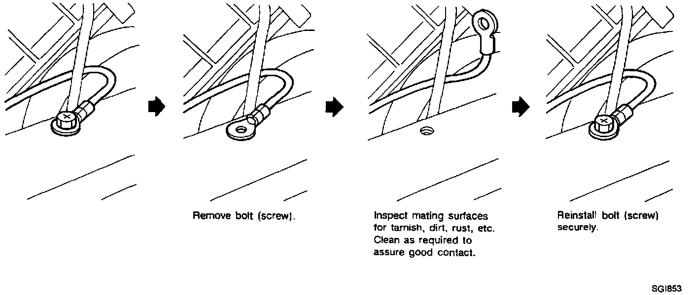 Electronically controlled circuits are very sensitive to proper grounding. A loose or corroded ground can drastically affect an electronically controlled circuit. A poor or corroded ground can easily affect the circuit. Even when the ground connection looks clean, there can be a thin film of rust on the surface. When inspecting a ground connection follow these rules: