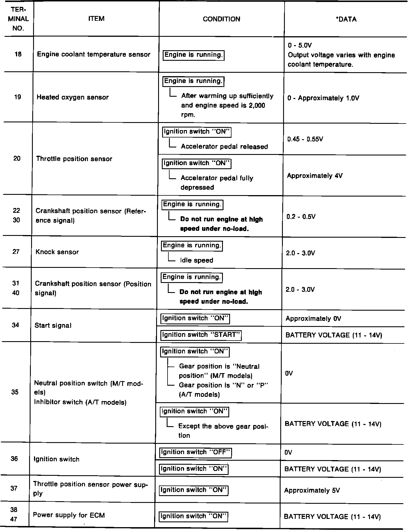 NOTE: Testing of circuit voltages can be done at the ECM connector by CAREFULLY backprobing the connector. Use a high-quality digital DVOM.