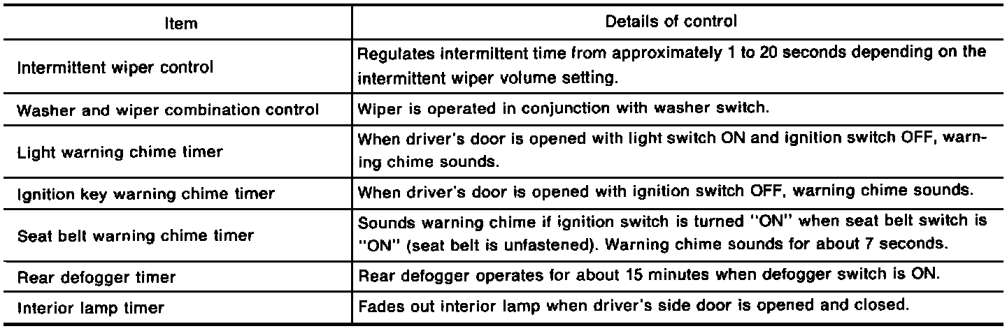 The time control system controls operation of the intermittent feature for the front wiper. It also controls wiper motor for the washer operation.