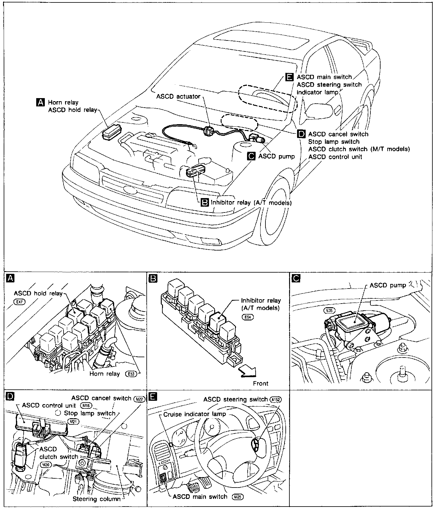 Automatic Speed Control Device (ASCD) Components Parts And Harness Connector Location:
